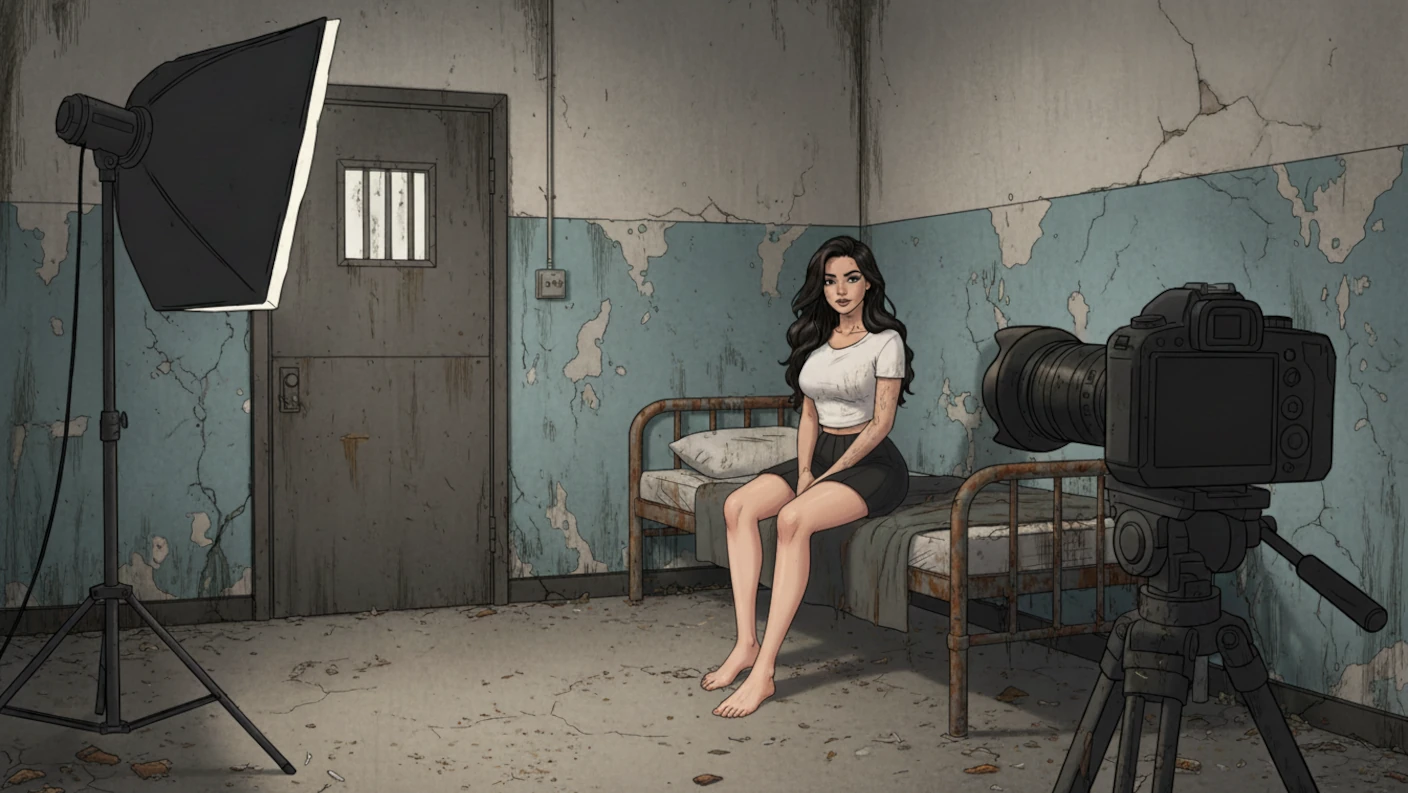 When Elena needs to go to the bathroom, Alicia’s glamor photo shoot turns into something far less glamorous. Utter depravity is just around the corner.